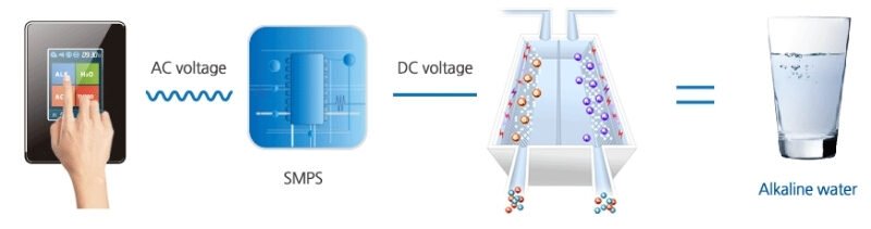 The ionization process conducted by the Alkaline Water Ionizer breaks the electrical bonding of water molecules, reducing the size of the molecules to 5-6 molecules per cluster. The micro-clustered water is absorbed easily into the cells, providing enhanced and faster hydration than conventional water.